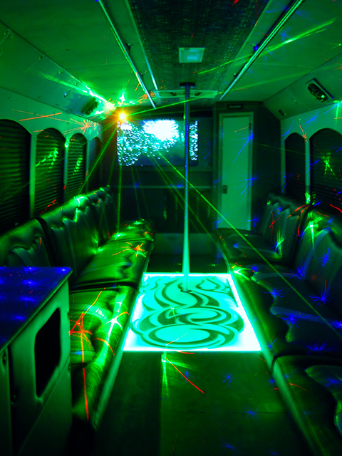 It also comes with other features ranging from 42" flat panel with a 1500 watt Pioneer & Kicker sound system, a dancer pole, CD/DVD player, LED dance lights, with a CDL licensed Driver to drive you to your desired destination. You can always have complimentary refreshments with snacks (under 21) for your refreshment, with ice and if you want it chilled and cups. The Atlantis Party Bus is also licensed and insured.
